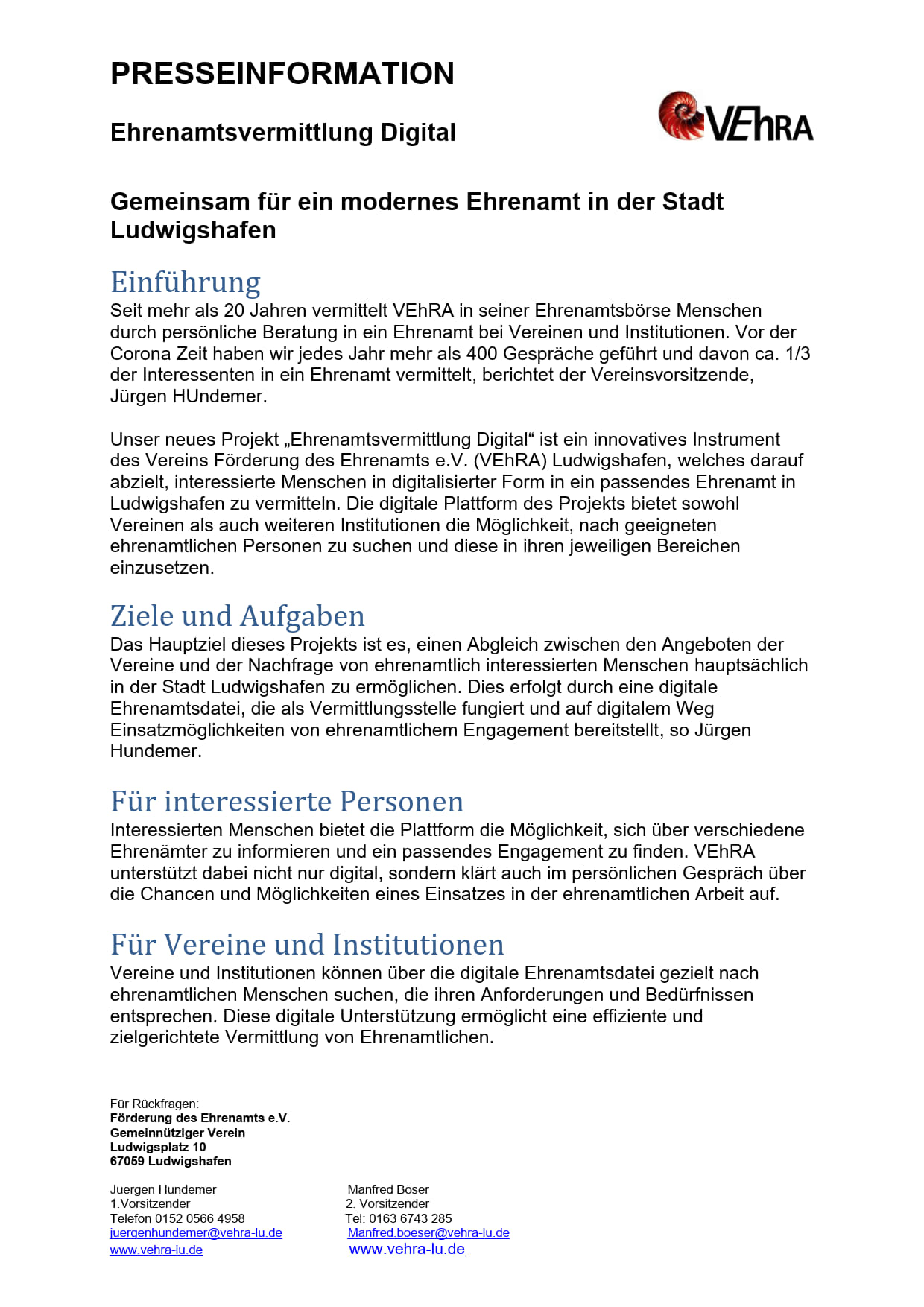 Die Sprechstunden – u.a. auch bei der VEhRA – sind grundsätzlich kostenlos und niederschwellig und werden von den inzwischen 17 digitalen Helfern in wechselnder Besetzung bedient.